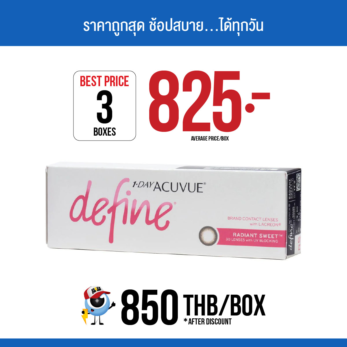 หากคุณกำลังมองหาวิธีที่สะดวกสบาย และมีไตล์ในการเพิ่มความสวยของสีตาของคุณ 1-Day Acuvue Define Radiant Sweet contact lenses เป็นตัวเลือกที่ดี ด้วยเทคโนโลยี Lacreon และการป้องกันรังสี UV เลนส์เหล่านี้จะให้ความสะดวกสบายตลอดวันและสุขภาพตาที่ดี ด้วยการออกแบบที่เป็นเอกลักษณ์และการเพิ่มสีตาที่ดูเป็นธรรมชาติ สายตาของคุณจะเปล่งประกายอย่างแท้จริง อัพเกรดวิถีชีวิตประจำวันของคุณด้วย 1-Day Acuvue Define Radiant Sweet contact lenses